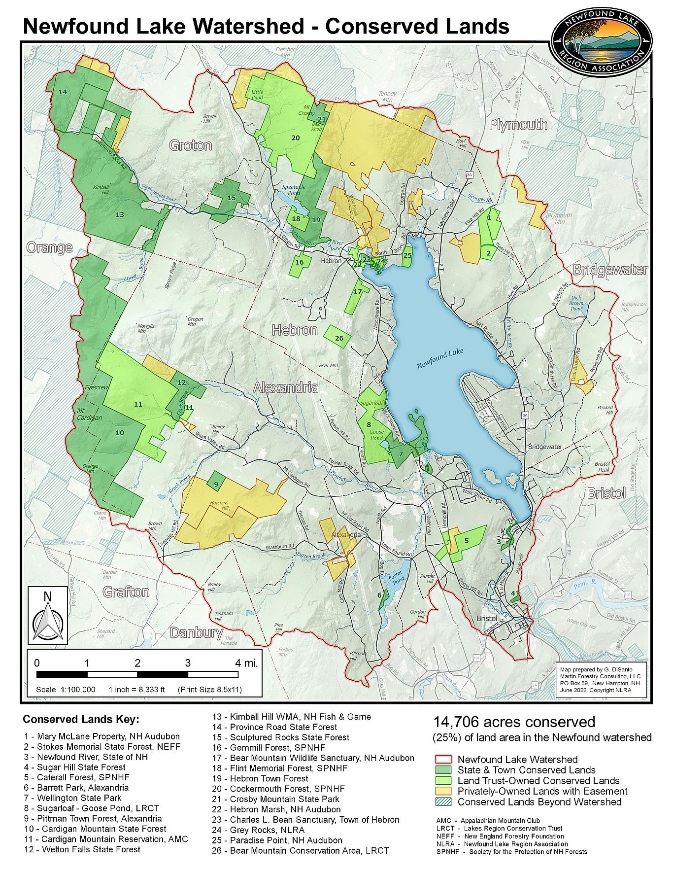 Currently, over 14,000 acres, nearly 25% of the land in the Newfound watershed, is conserved.